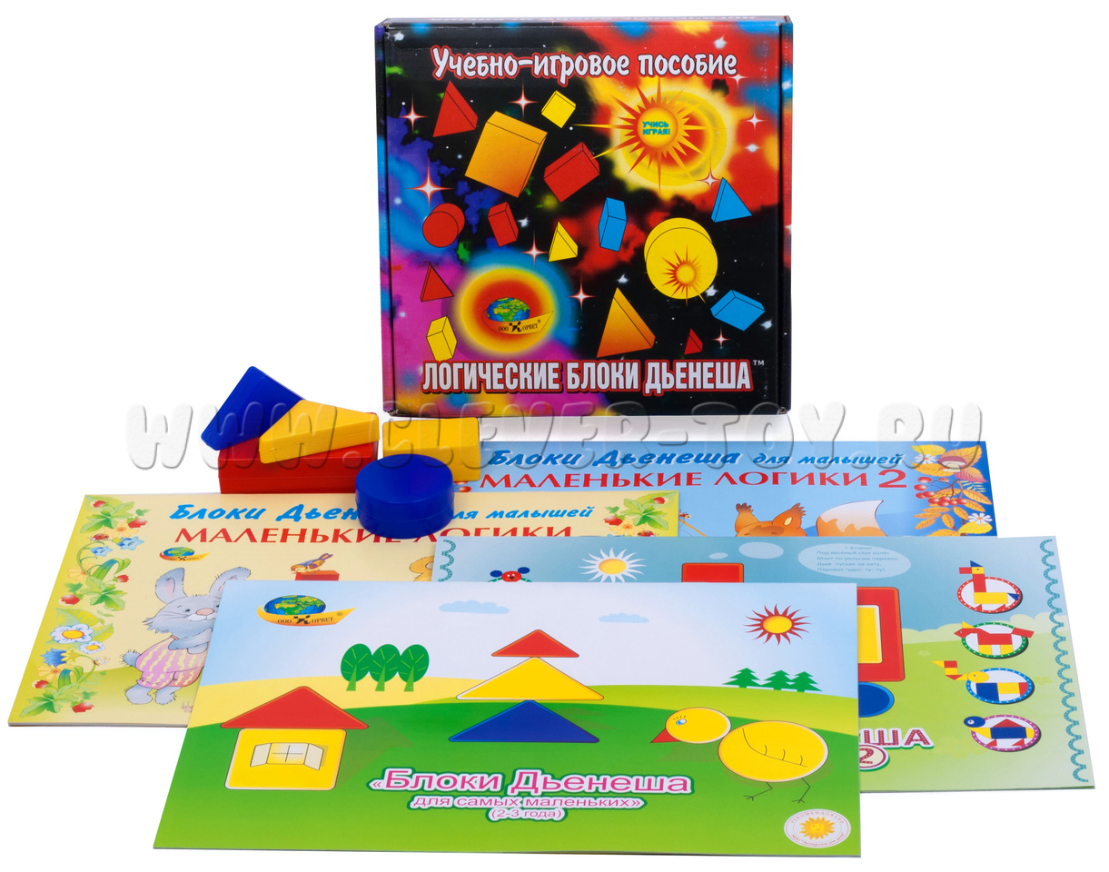 Набор логических блоков состоит из 48 объемных геометрических фигур, различающихся по цвету, форме, размеру и толщине. Таким образом, каждая фигура характеризуется четырьмя свойствами. Основная цель - научить ребенка решать сложные логические задачи.