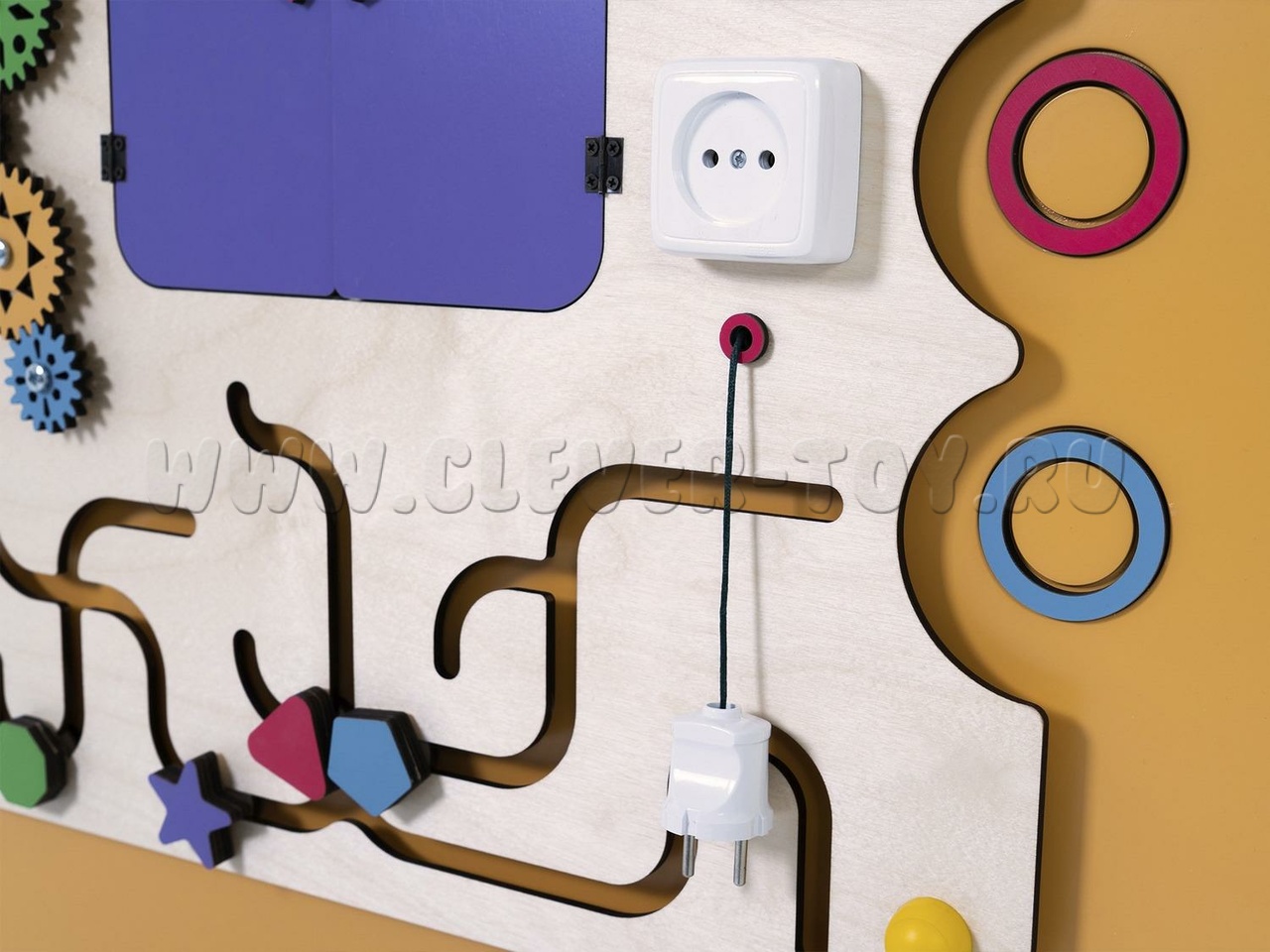 Основная цель бизибордов - помочь детям безопасно освоить предметы быта (замки, крепления, механизмы, переключатели, розетки) и развить мелкую моторику. Используя обесточенные тренажёры с яркими рисунками, дети улучшают свои навыки и готовятся применять их на практике.