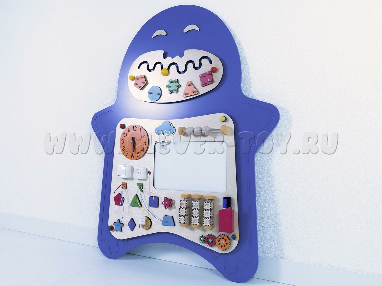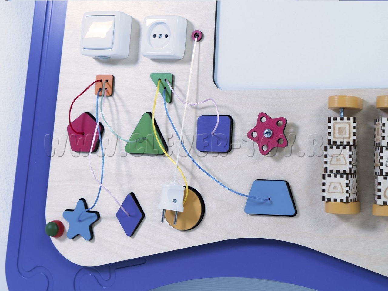 Бизиборд "Мип" предназначен для детских образовательных учреждений и помогает изучать геометрические фигуры (форму, количество углов, вид, цвет и особенности). Задания составлены по принципу "от простого к сложному". Например, при изучении геометрических фигур можно тренироваться в счёте, определяя количество углов. Также можно рисовать запомнившиеся фигуры или играть в крестики-нолики, вращая фигуры.
