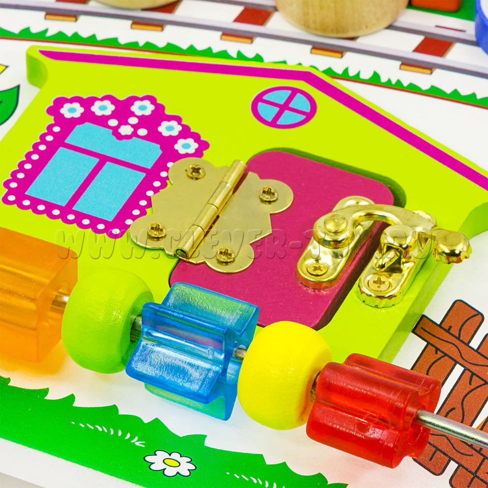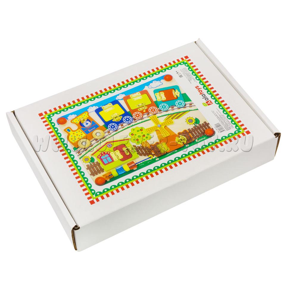 Бизиборд «Вагончики» от крупнейшего производителя деревянных игрушек – фабрики «Алатойс» - выполнен из экологически чистого материала – дерева (берёза).