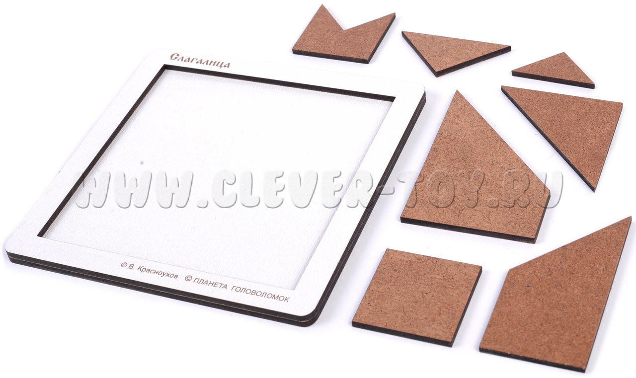 Слагалица - совершенно самобытный и очень гармоничный набор, способный надолго увлечь любителя головоломок и принести ему массу радостных открытий. Задачи - Построение фигур по заданным силуэтам.