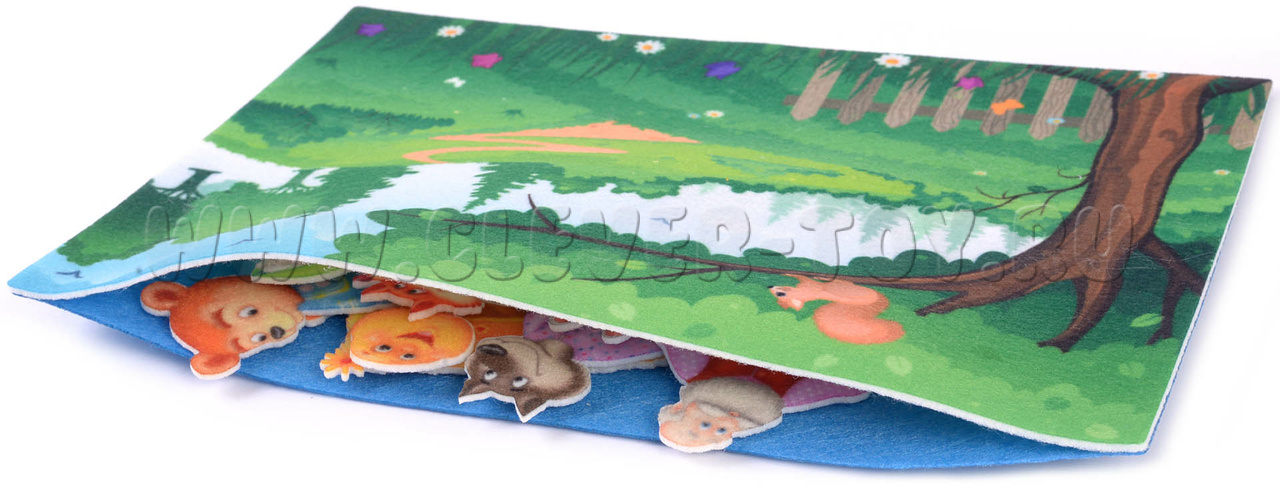 Заниматься можно как в группе, так и индивидуально. Благодаря липучкам ребенок научится считать, рассказывать по картинкам сказку, разовьет память, внимание, логику и речь. Для того что бы детали не терялись, сзади сделан кармашек, в который после игры удобно их прятать. Купить развивающее пособие можно в нашем магазине с доставкой в любой город России!