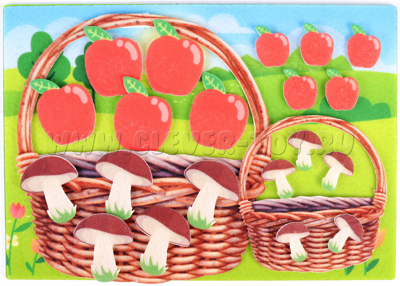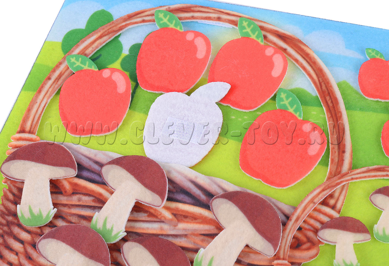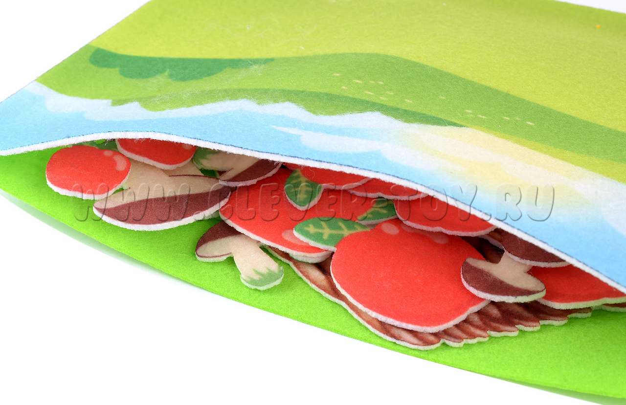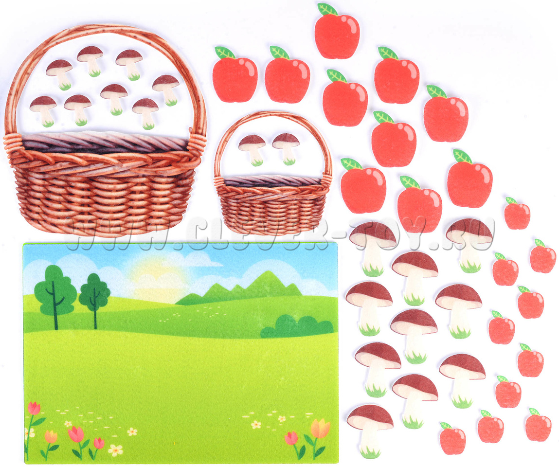 Игровое поле с карманом 20*30см, грибочки - 20шт., яблочки - 20шт., корзина - 2шт.