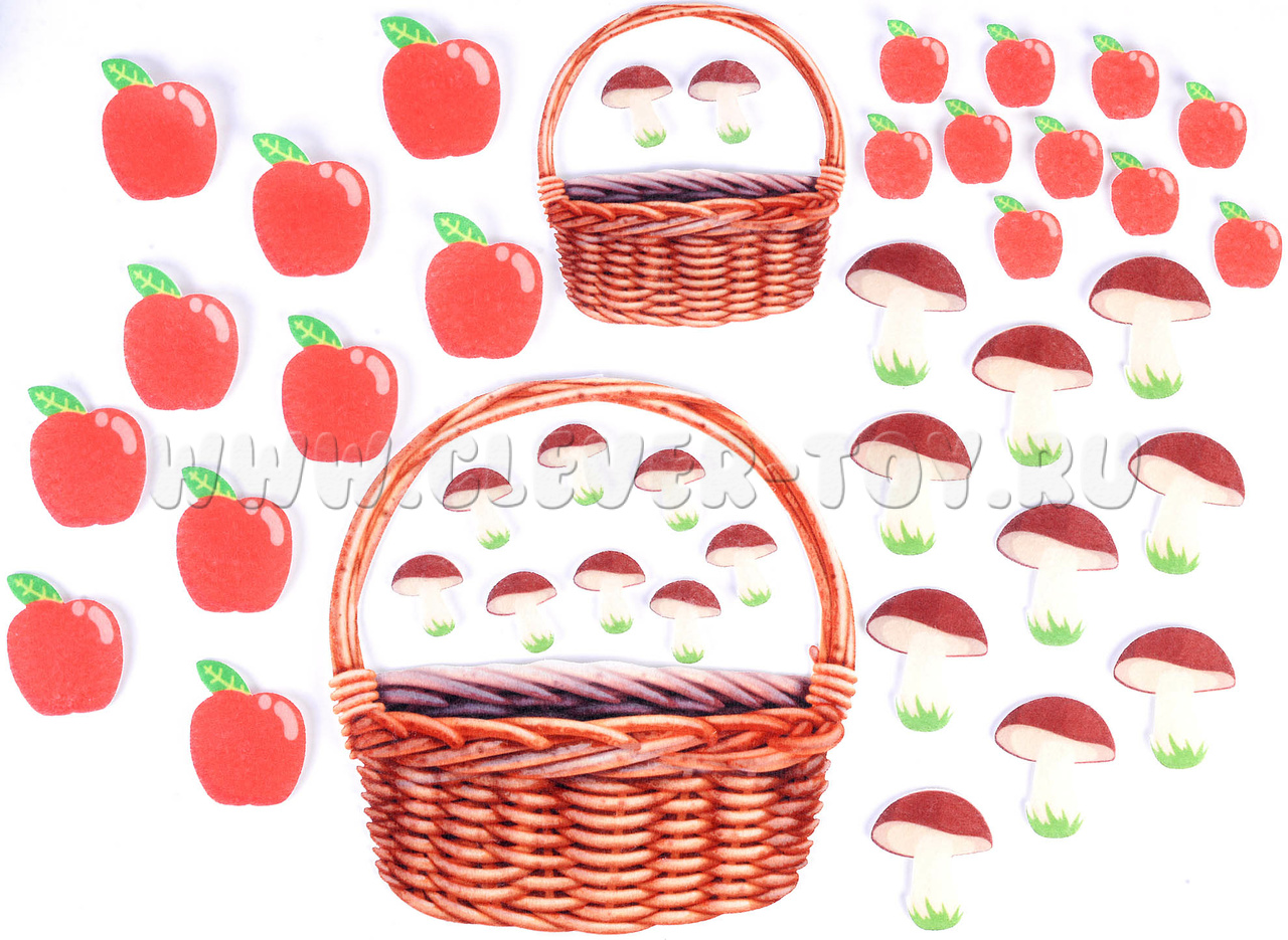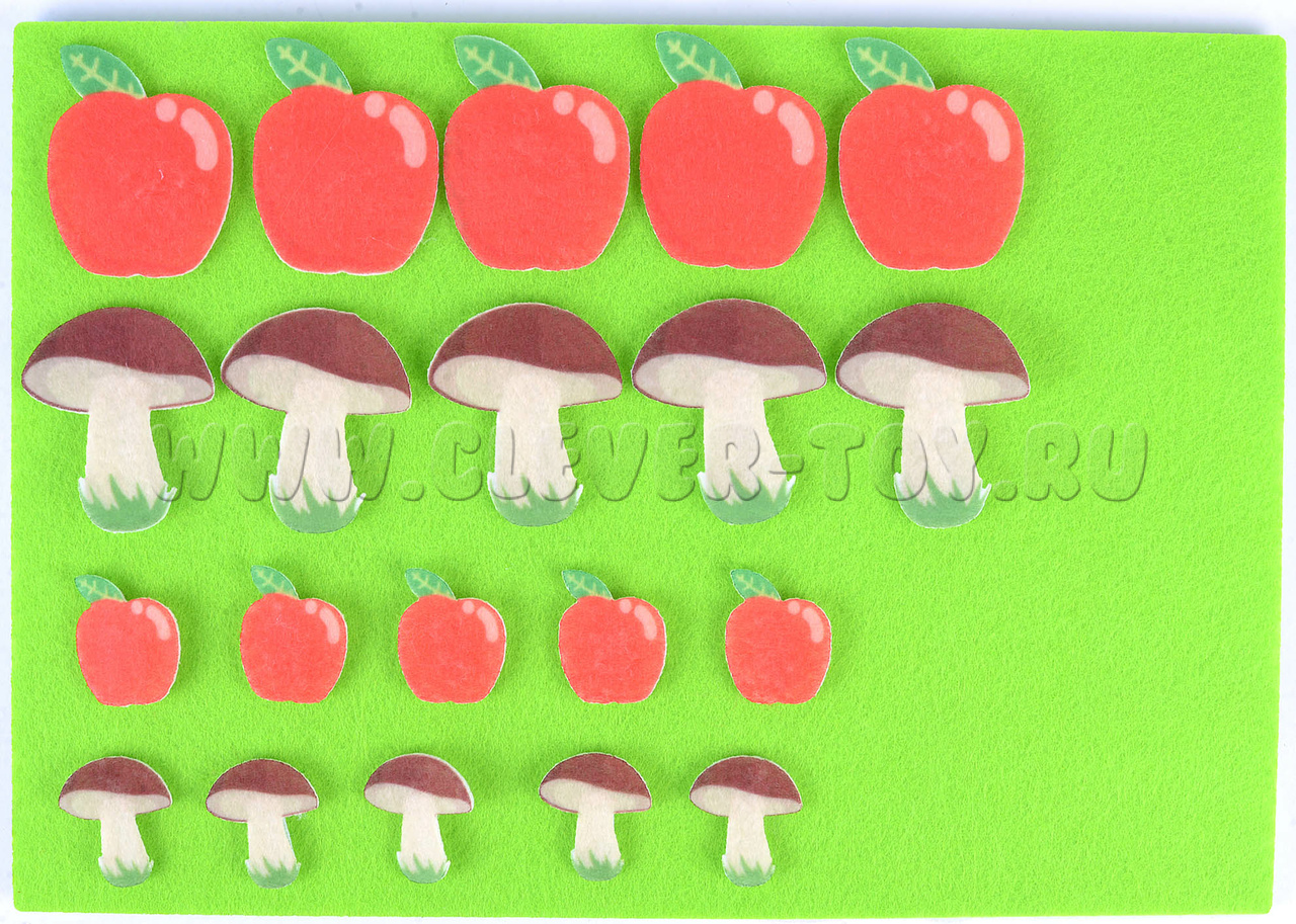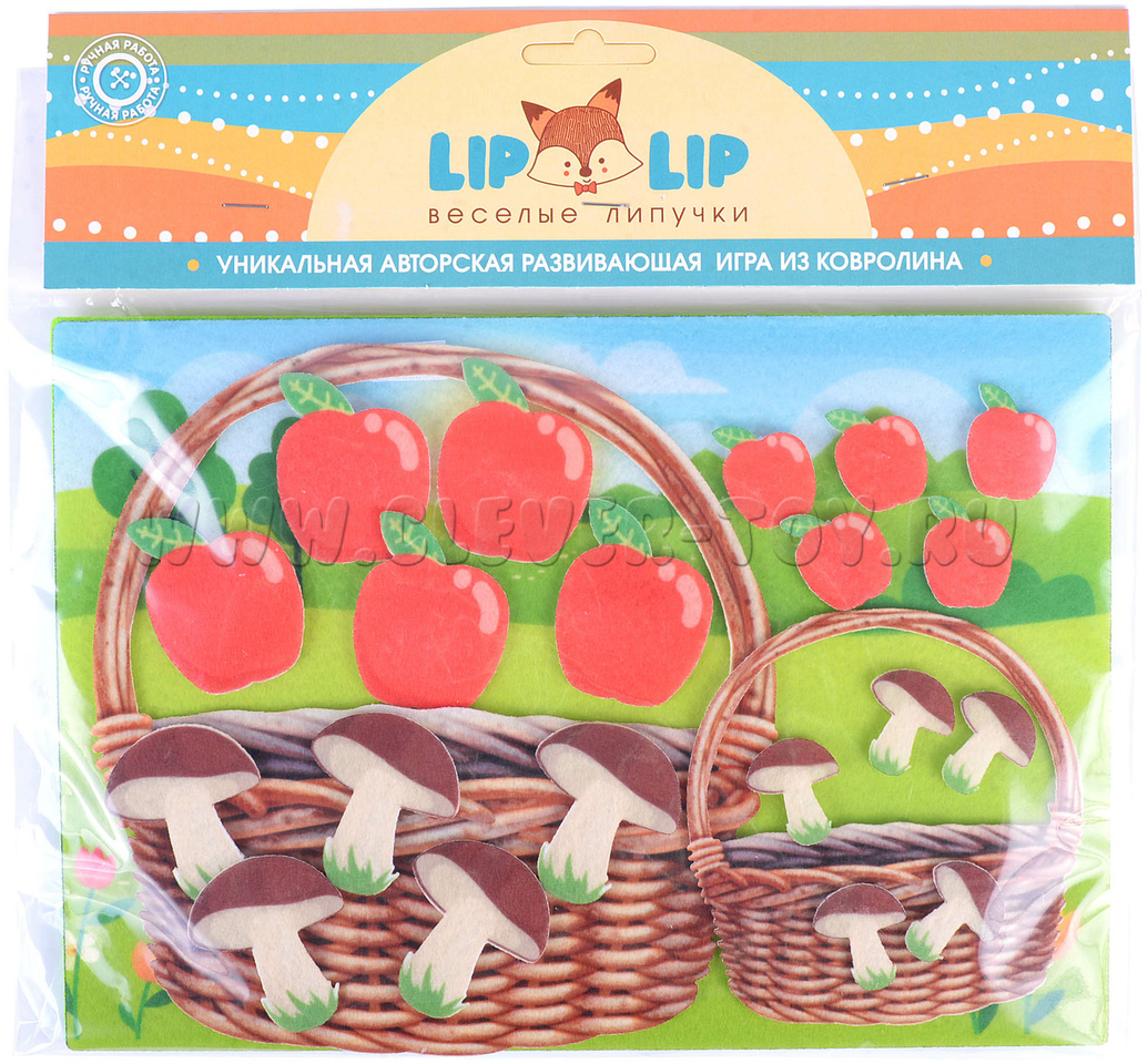 Игровое поле с карманом 20*30см, грибочки - 20шт., яблочки - 20шт., корзина - 2шт.