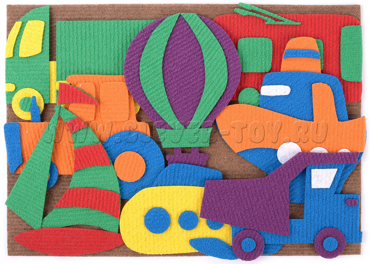 Игры-занятия с ярким ковролиновым набором «Транспорт» увлекут вашего ребёнка и помогут подготовить его к школе. Рекомендован специалистами для дошкольного развития.