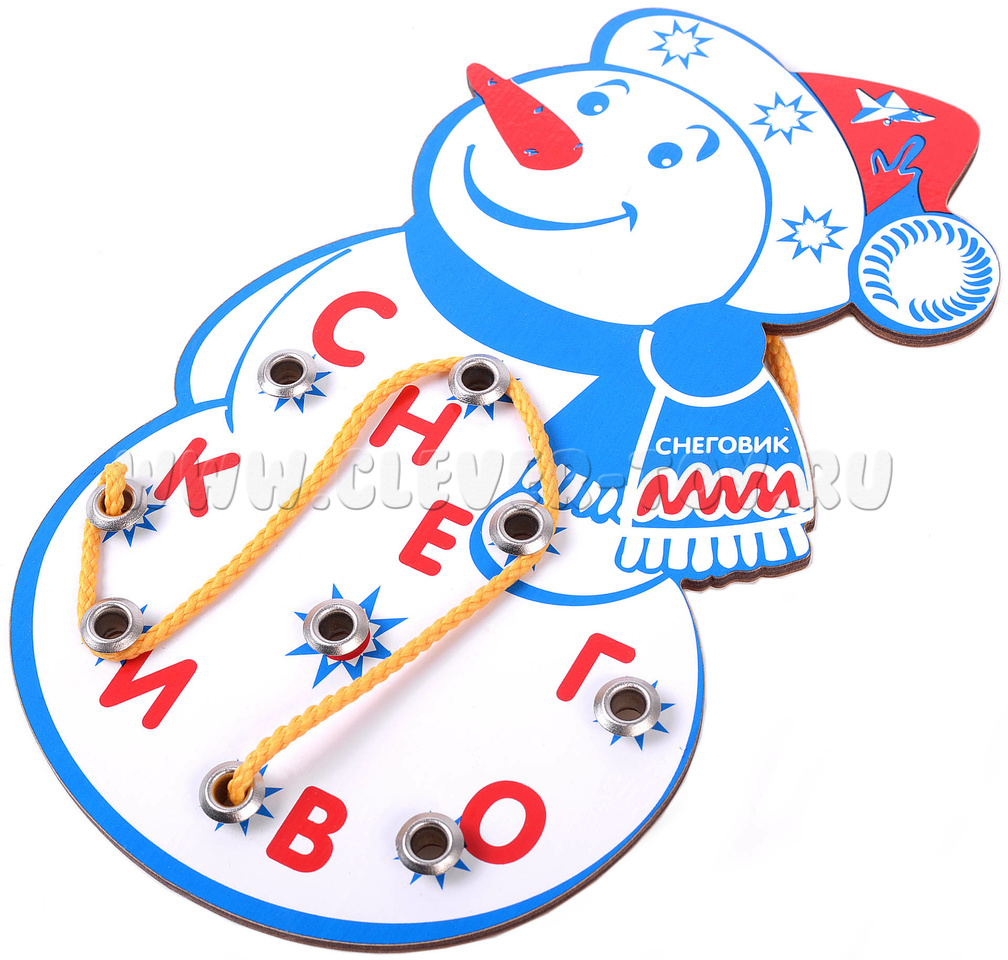 Как в нее играют: шнурок ребенок продевает в отверстие, затем закручивает его вокруг последующих букв, и таким образом составляет различные слова. Символ "звездочки" означает любую букву.