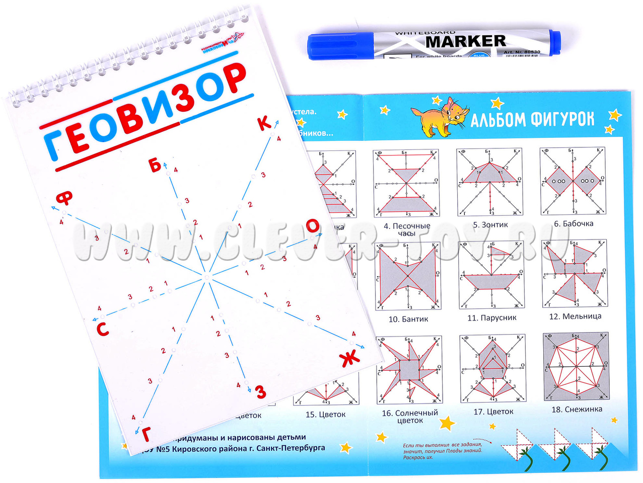 - «Геовизор» - альбом с прозрачным экраном, размеченным координатной сеткой с точками (отверстия экрана) и ламинированной подложкой;