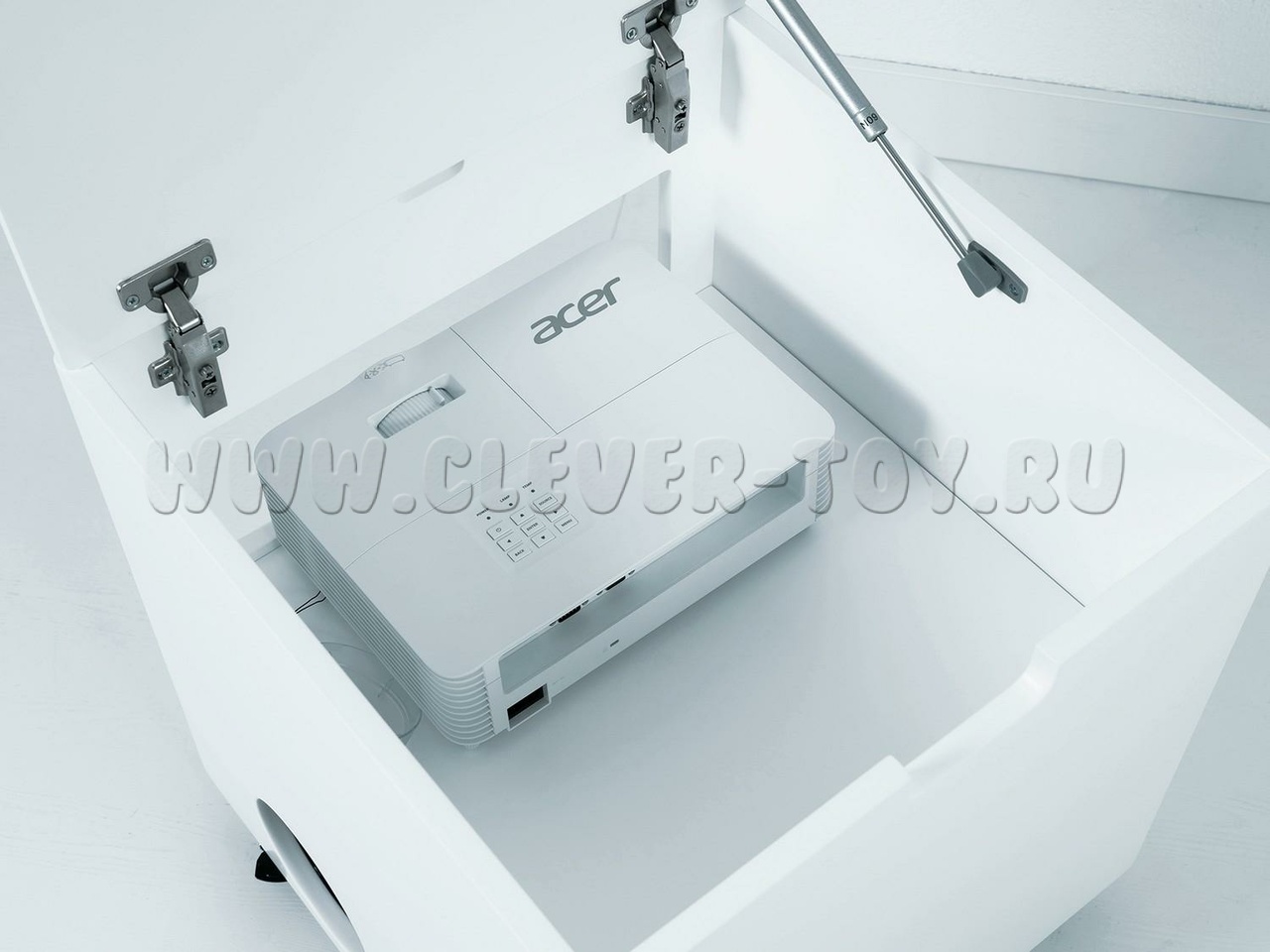 Благодаря подвижной платформе и компактным размерам оборудование легко перемещать между помещениями, а яркий проектор позволяет выводить изображение на различные поверхности.