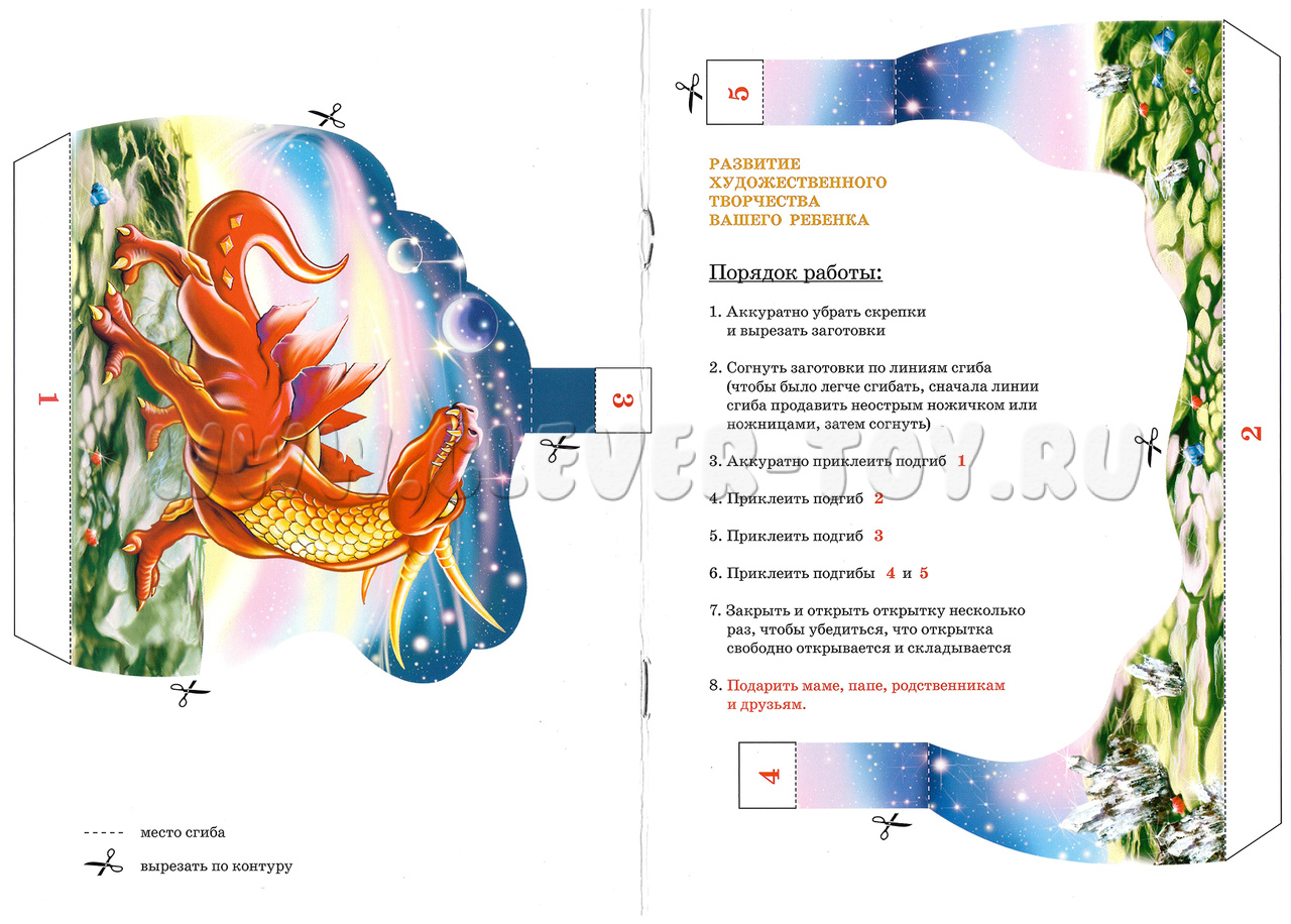 3D объёмная открытка-книжка для детского творчества "Дракон".