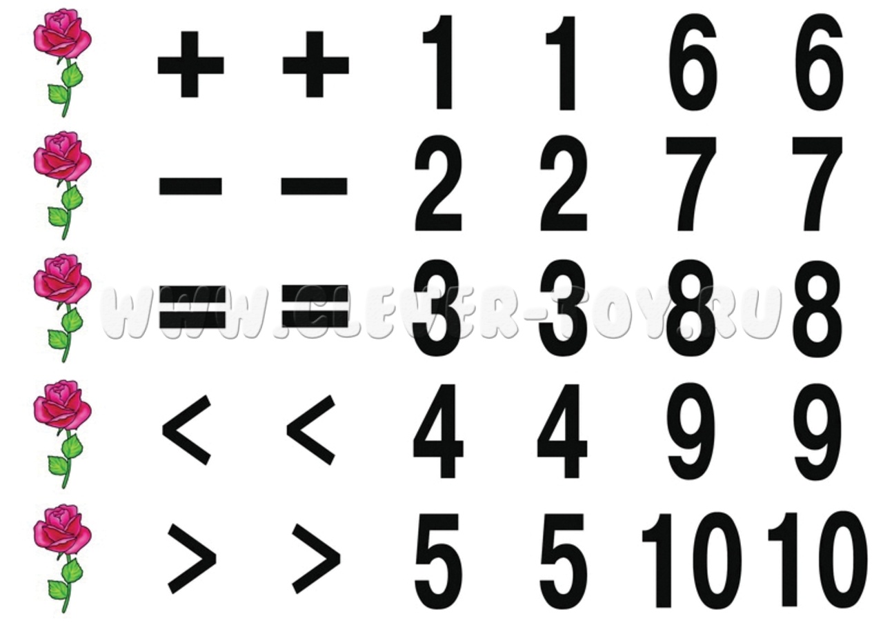 - познакомиться с цифрами и математическими символами;