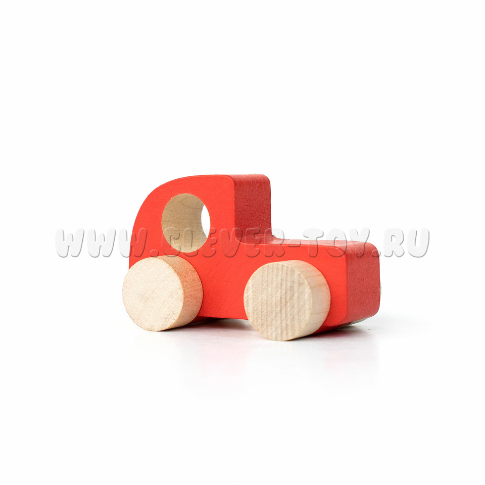 Деревянная машинка-каталка "Томик" красная для самых маленьких ребят, с отверстием для пальчиков.