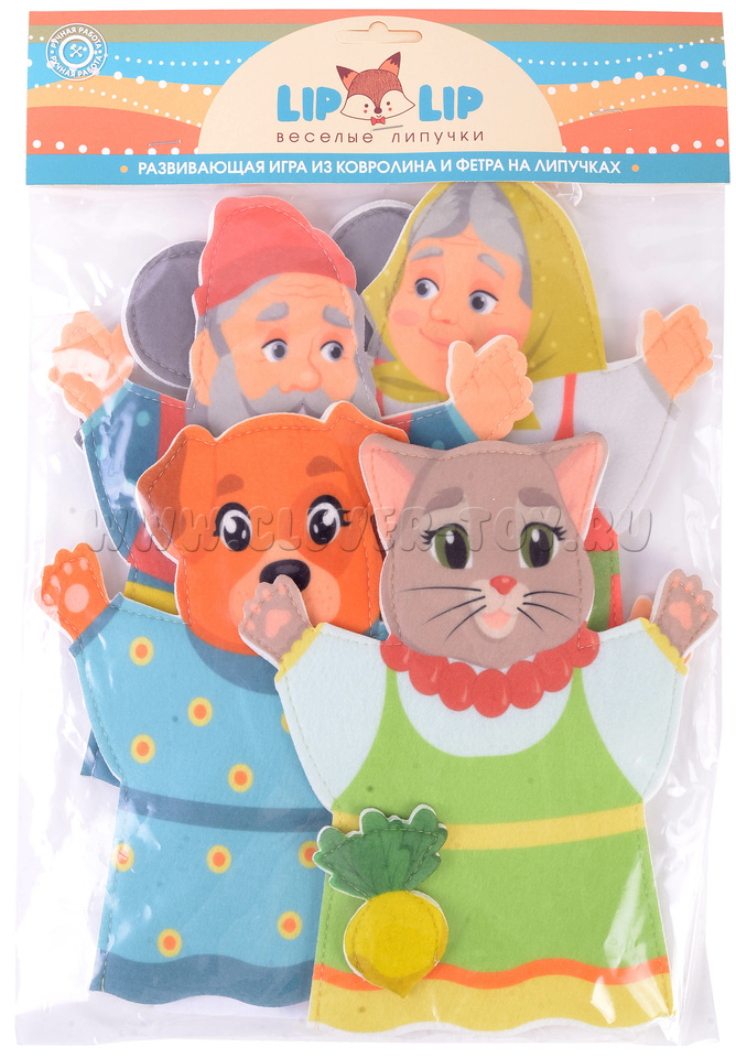 Шесть персонажей из сказки репка на руку 23 см. Бабка, дедка, внучка, собака, кошка, мышка + репка (пальчиковый театр).